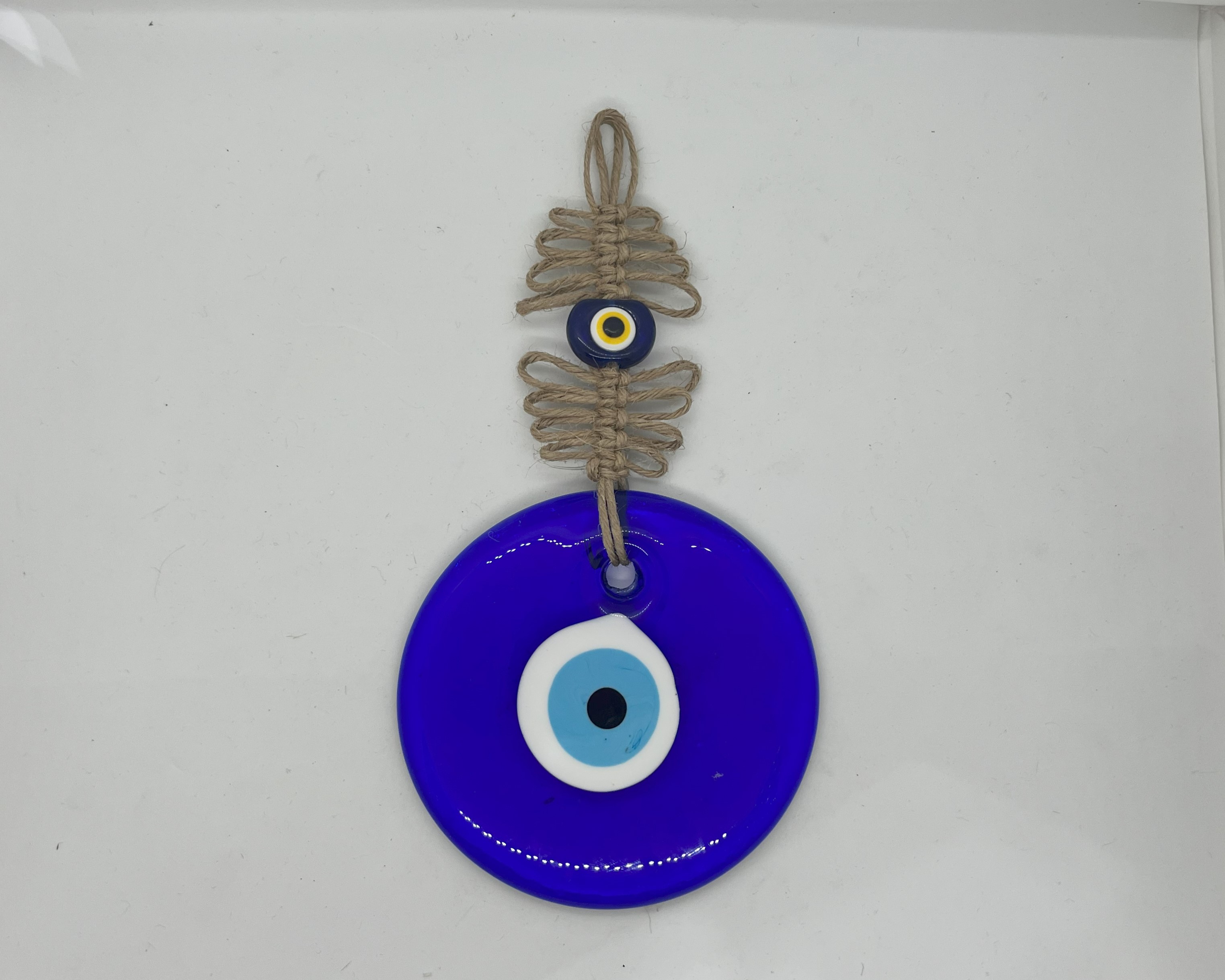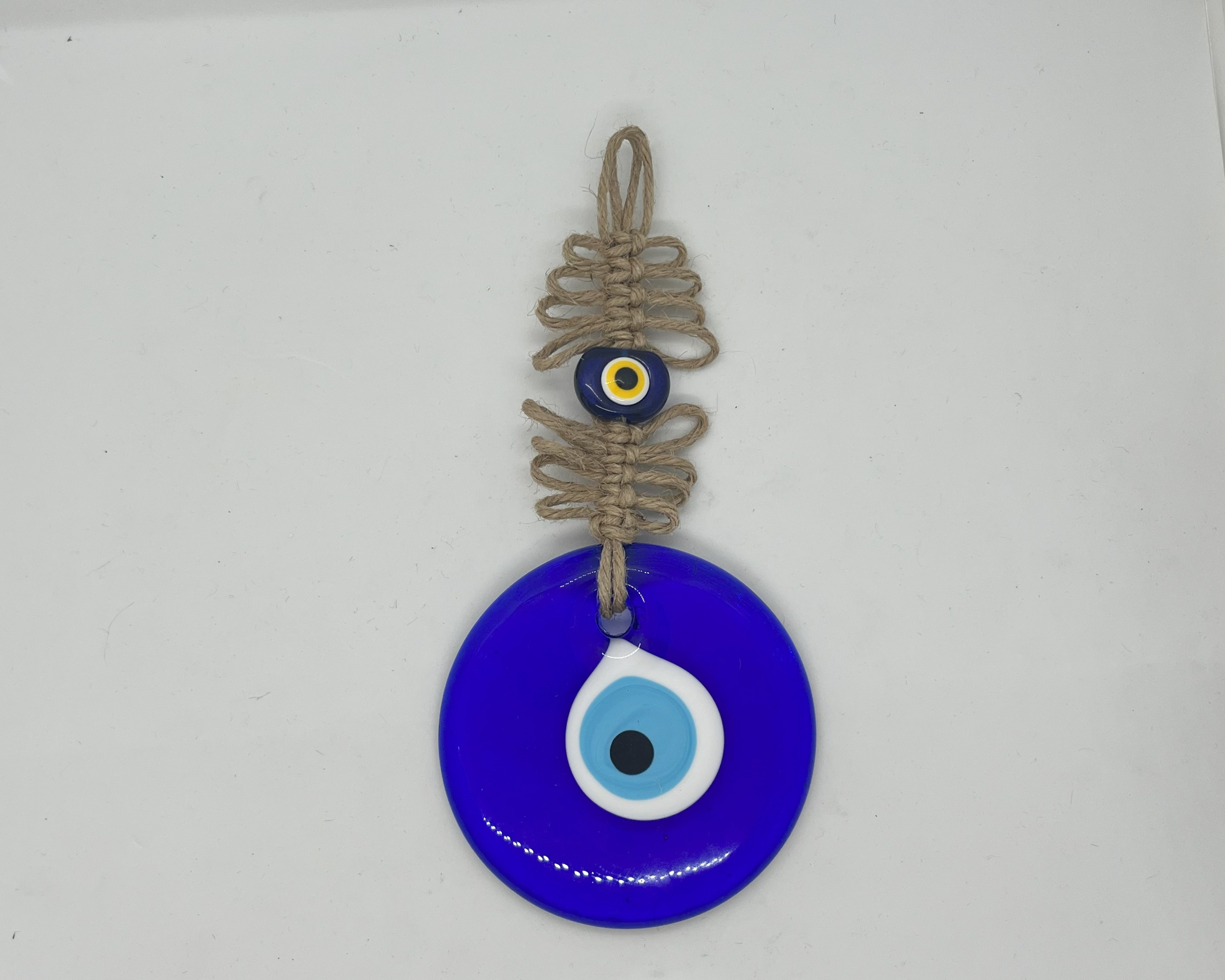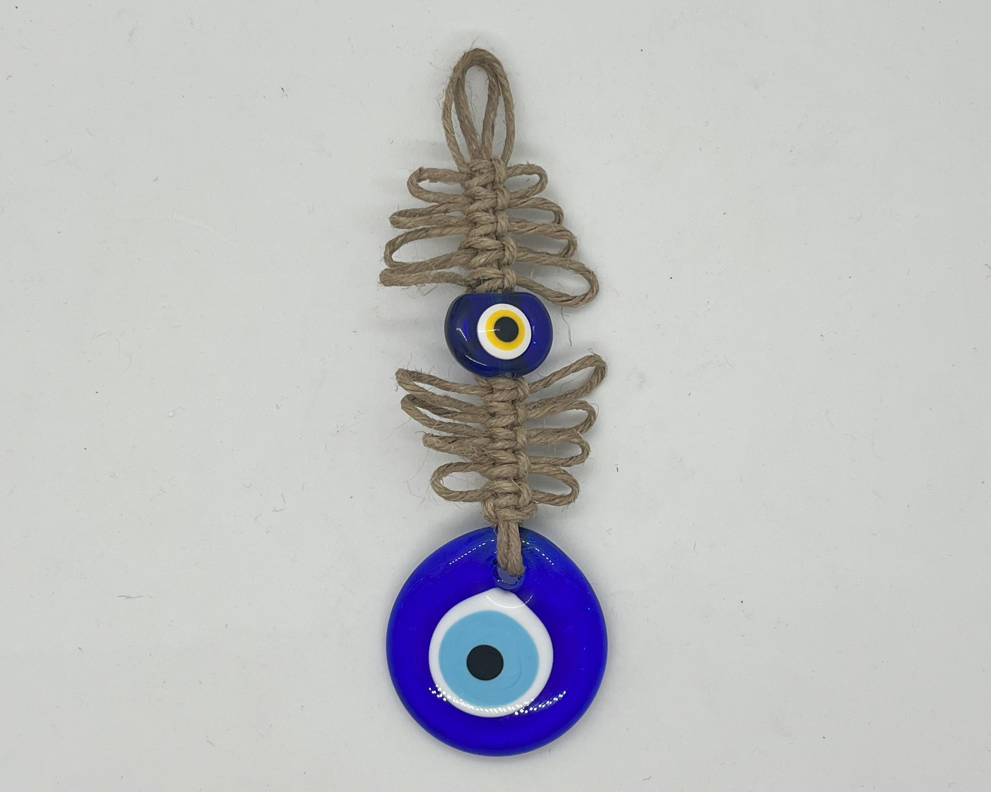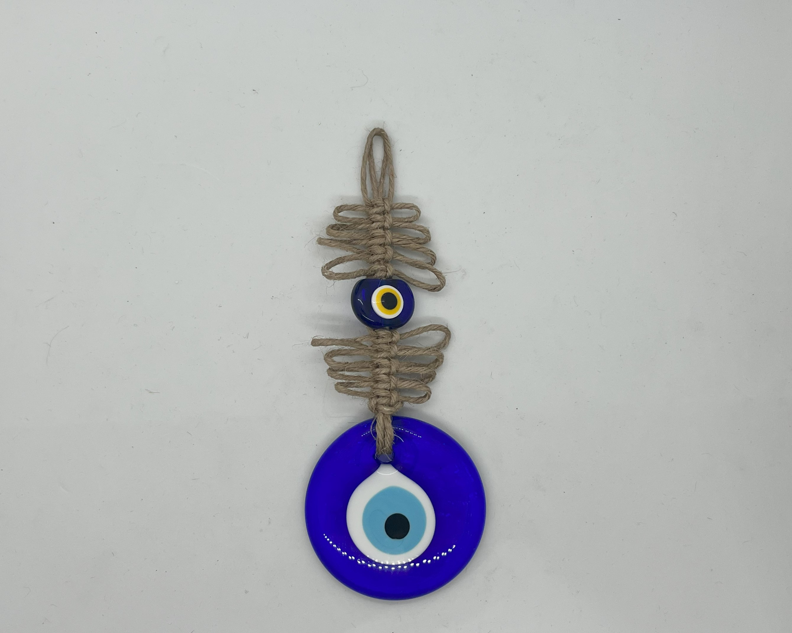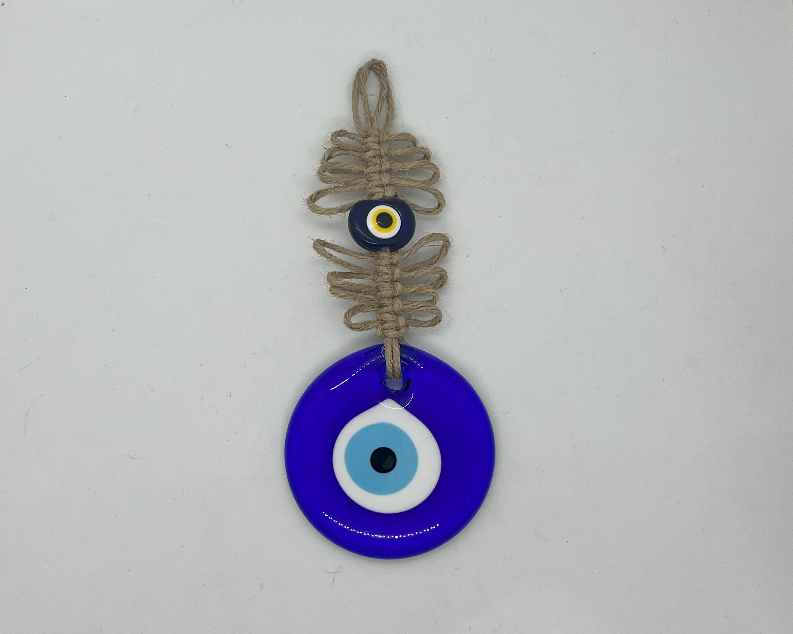 MAKRAME ÖRGÜLÜ NAZARLIK, Türk kültür ve geleneklerine uygun bir şekilde el yapımı olarak üretilmiş bir şans ve korunma simgesidir. Makrame tekniği ile örülmüş ve içine Nazar Boncuğu eklenmiştir. Bu nedenle hem göze hoş gelen bir görüntüye sahiptir hem de Nazar Boncuğu sayesinde kötü enerjileri uzaklaştırarak koruyucu bir özelliğe sahiptir.